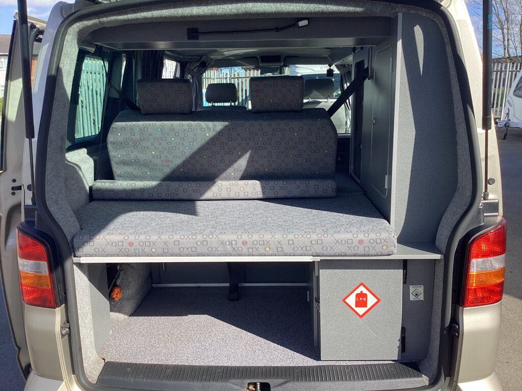 The rear of the van with its full opening door reveals the gas locker, more storage space which includes ‘through’ storage for transportation of longer items such as ski’s