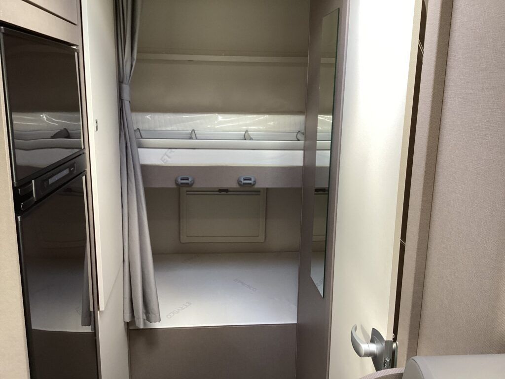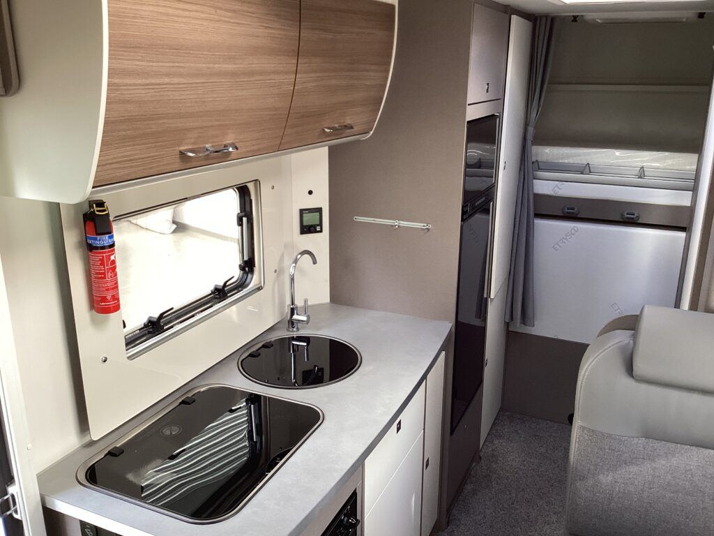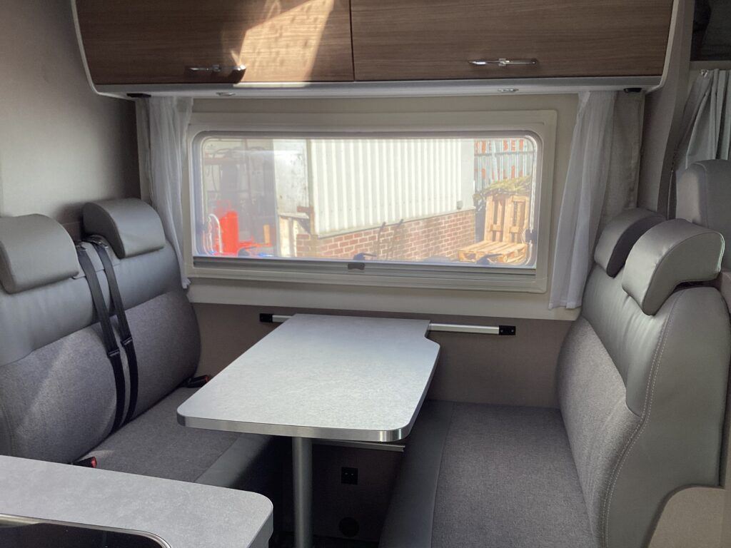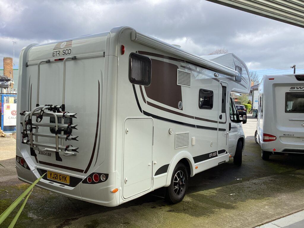 2021 Etrusco A6600BB 6 berth Motorhome Etrusco are part of the Hymer family and produce stunning modern fresh looking Motorhomes, built in Hymer’s most state of the art factory in Tuscany. The A6600BB model is superbly versatile with rear fixed bunk beds, the bottom of which folds up to make a large garage for travelling. Built on the latest Euro 6 Fiat Ducato 2.3l 140bhp 6 speed manual chassis, having covered just 9500 miles from new, this one family owned van is ready for its new owners to take it on more adventures. This is a 6 berth, 6 seatbelt Motorhome with an MTPLM of just 3500kg so can be driven on any car licence and with a shipping length of just 6.7m can be driven anywhere. The cab is well equipped with leather steering wheel and gear knob, cruise control, cab air con, reverse camera, DAB radio and Apple CarPlay. There is a large double bed above the cab, accessed by conveniently placed ladders. The dinette area, with 4 travelling seats is a comfortable place to eat and spend an evening, whilst also folding down to make a double bed. The central kitchen hosts an oven, grill, hob, sink unit and large fridge/freezer as well as ample storage cupboards and workspace. The washroom is opposite with cassette toilet, wash basin, vanity unit and separate shower unit. The rear fixed bunk beds finish off the internals. Externally the van has a Fiamma canopy and 4 bike rack fitted. The van is also fitted with a solar panel This stunning Etrusco comes with the remainder of the Etrusco warranty plus 2 years Fiat warranty. Available to view Mon -Sat at Steve Mann Caravans in Harrogate HG1 Please call 01423 562672 for more info